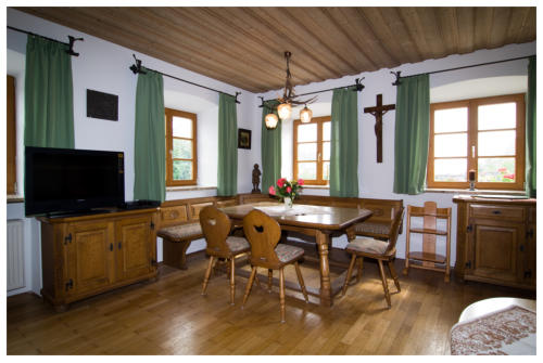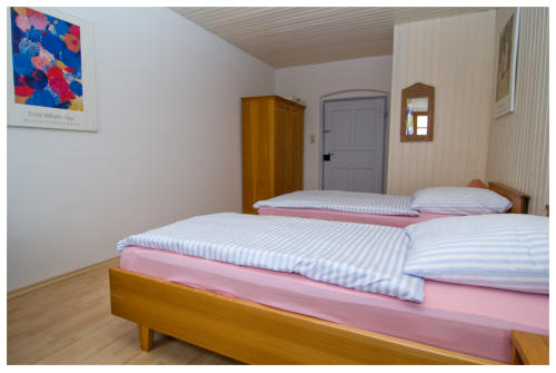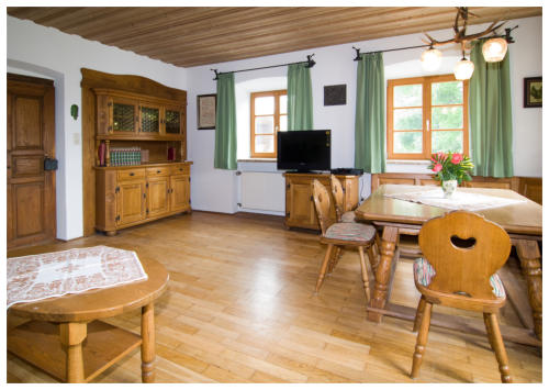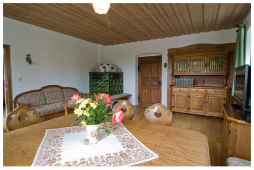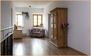 Ferienwohnung über 2 Etagen für 4-8 PersonenEG:Wohnzimmer (bäuerlicher Stil) mit Sitzgruppe und Essecke, großer Diele,Bad/Dusche/WC und Terasse nach SüdenOG:4 Schlafzimmer, große Diele, Dusche WC und Südbalkon